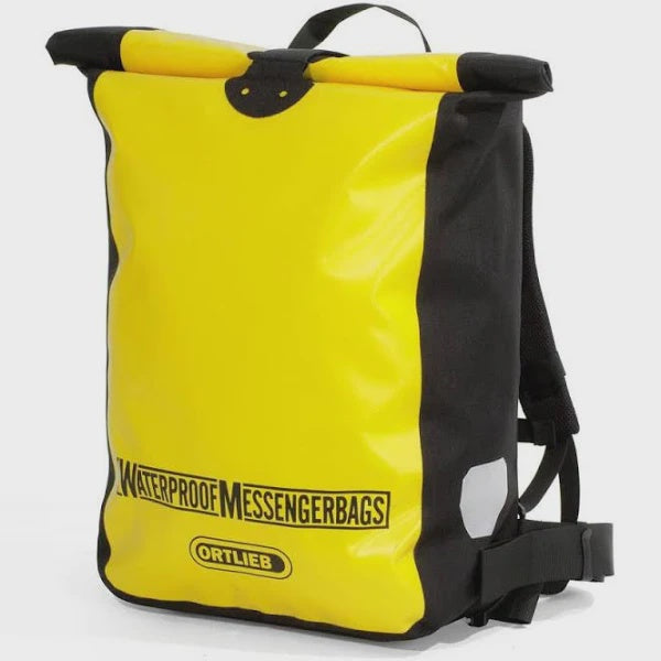Ortlieb's Messenger Bag is just as at home on a morning commute, academic campus, or zooming through a day of riding. It's made from Ortlieb's signature waterproof material to keep your payload from getting wet even in the worst weather. Two shoulder straps, a waist belt, and a chest strap keep the bag secure and a foam back pad adds comfort while improving ventilation. The roll-top closure allows for quick access and a flexible packing height. If you're racing the sun home large reflectors increase visibility and once you get there you can stand your bag up in the corner thanks to the edge protectors and base feet