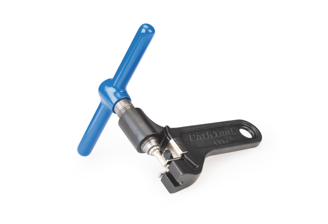A professional quality shop chain tool that works on 5-speed to 12-speed road and mountain bike derailleur chains, including SRAM AXS 12-speed, as well as 1/8", 3/16", and half link chains. The CT-3.3 features an adjustable locating shelf so it works on any width chain to remove and install chain rivets. Built to last and easy to use, the CT-3.3 features a comfortable handle, investment cast steel body and replaceable driving pin (#CTP). *The CT-3.3 will install, but not peen, Campagnolo 11 and 12-speed chain rivets.