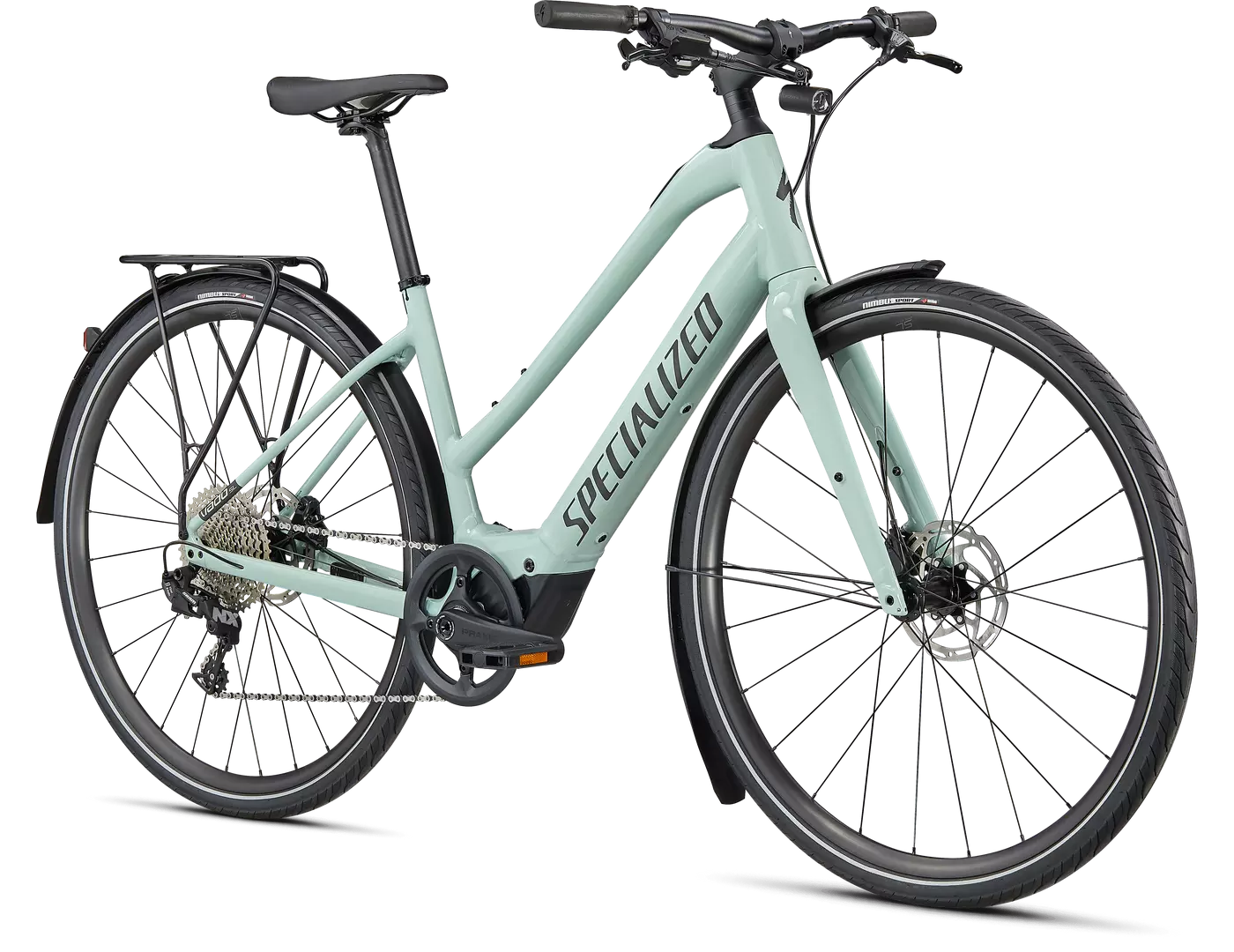 - Turbo SL mounted rear rack, Racktime-compatible for your favourite bags and panniers, and DRYTECH fenders to keep the spray away.